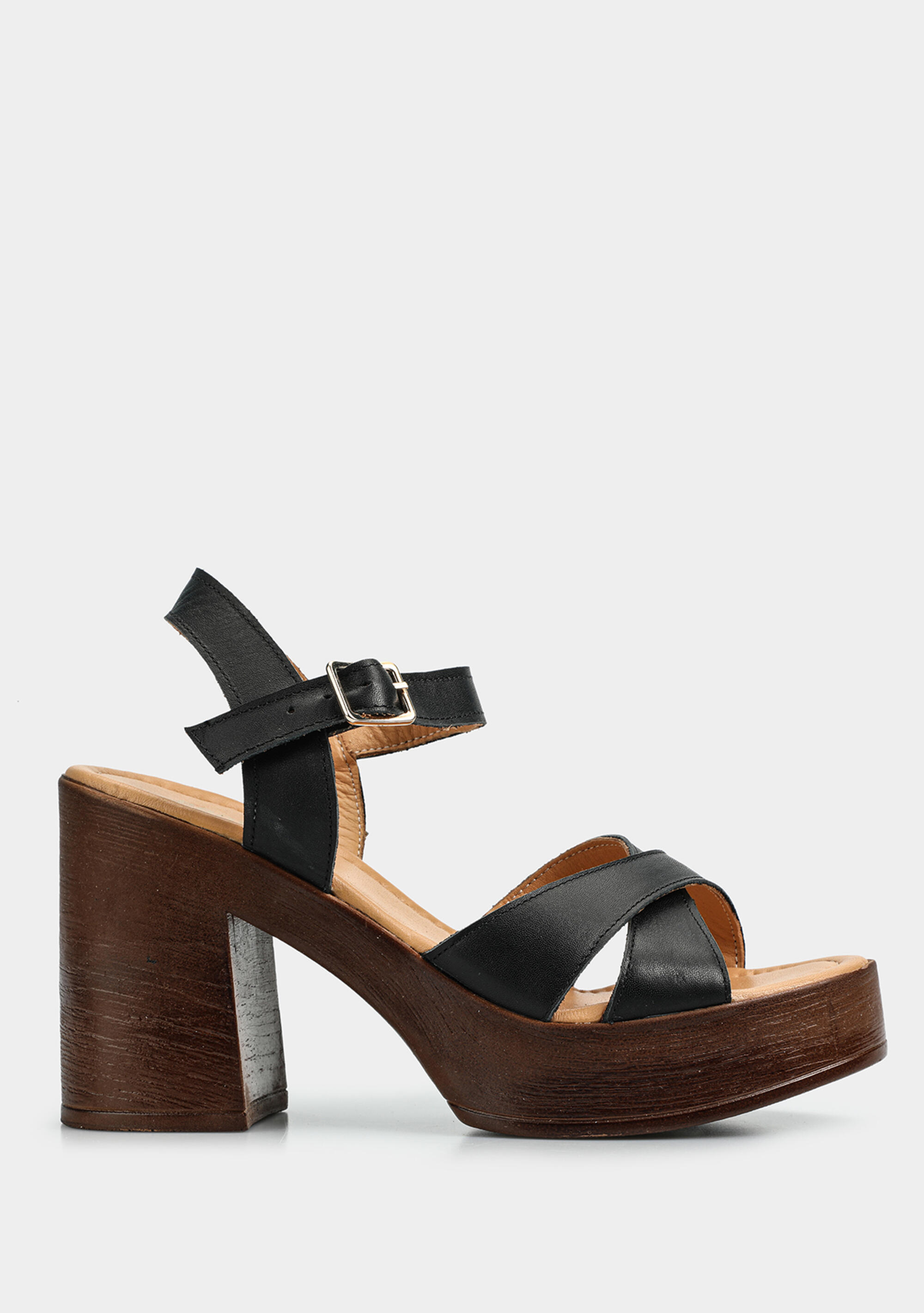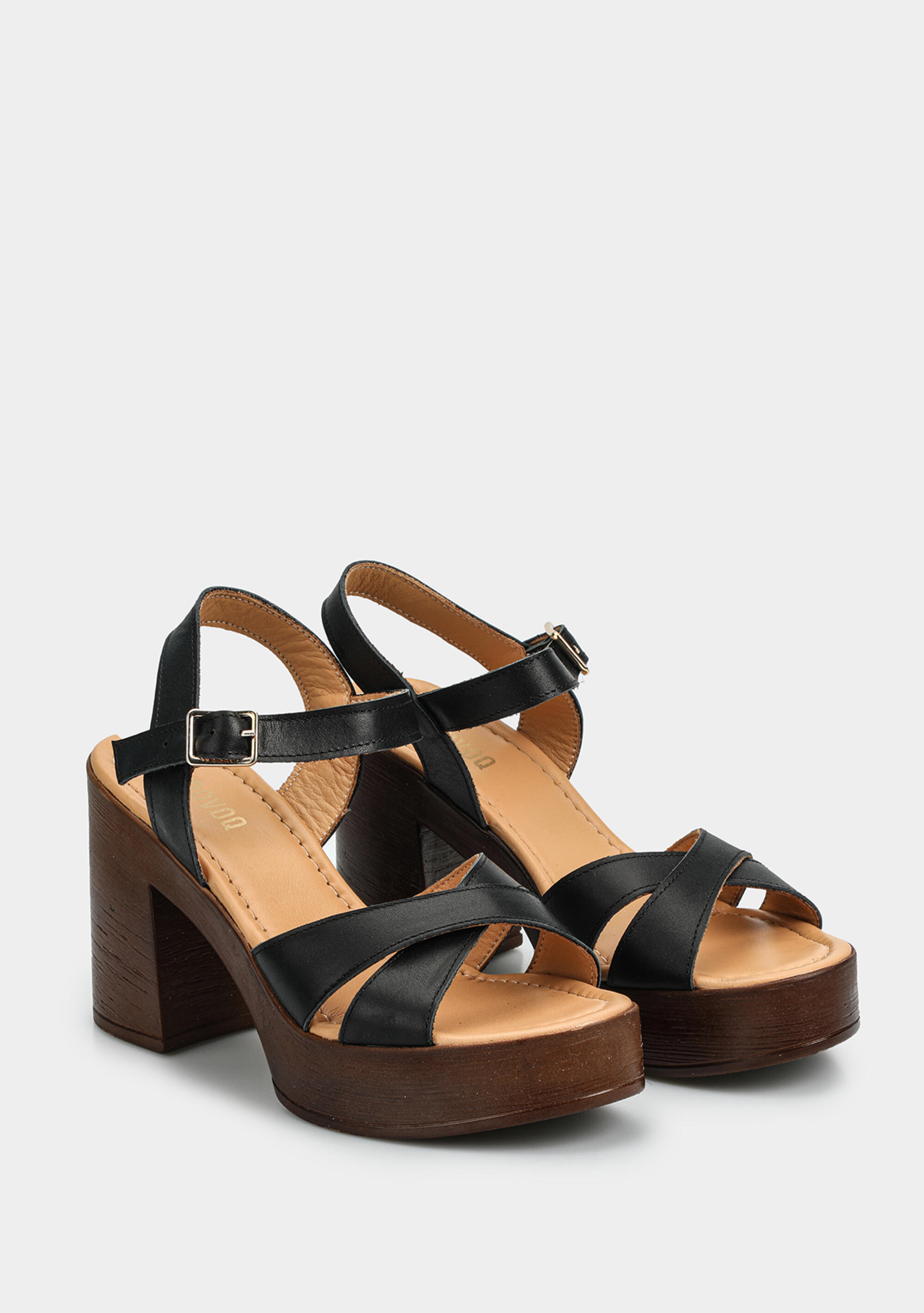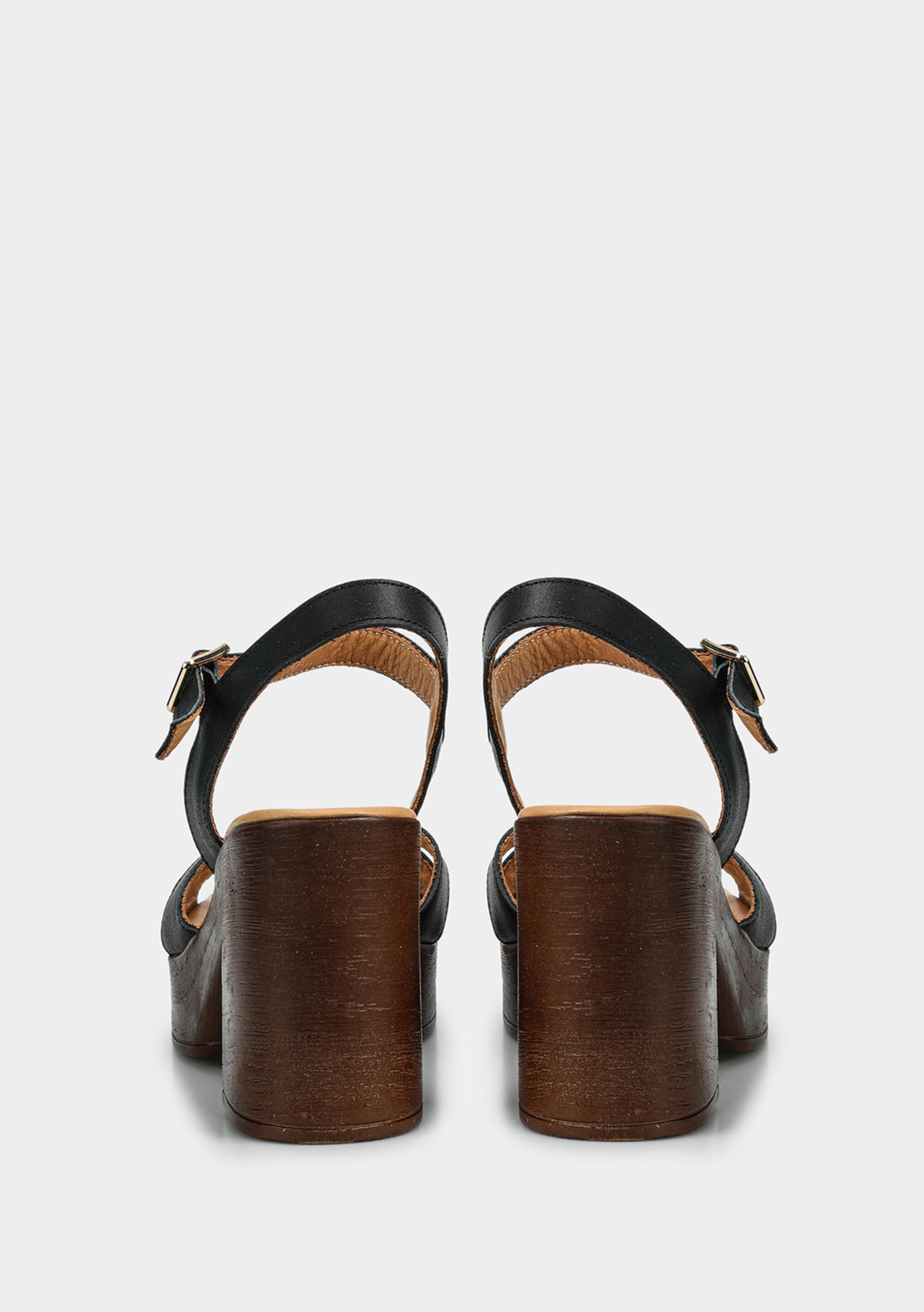 Siyah Deri Kadın Topuklu Sandalet